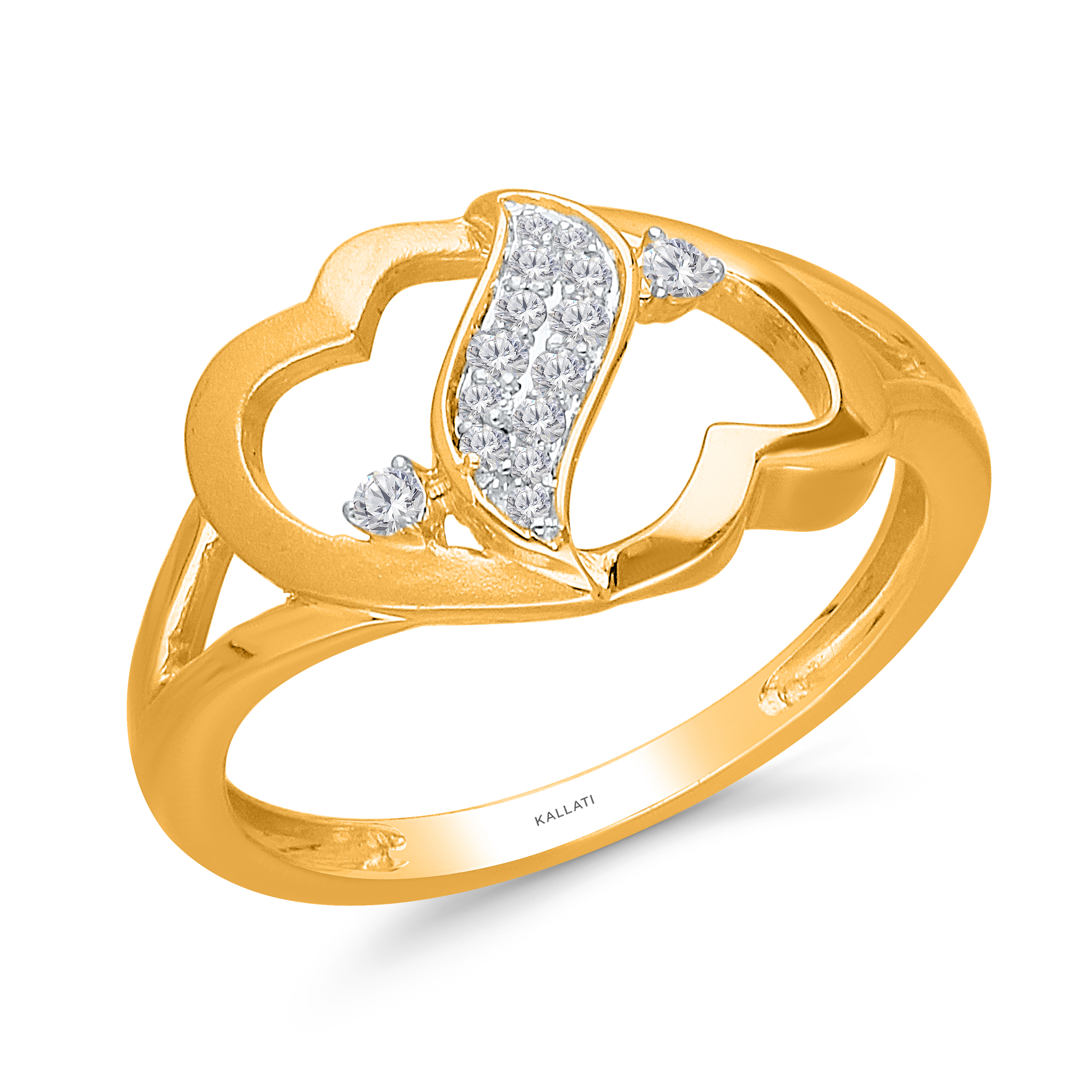 14 K YELLOW GOLD WHITE DIAMOND HEART RIN