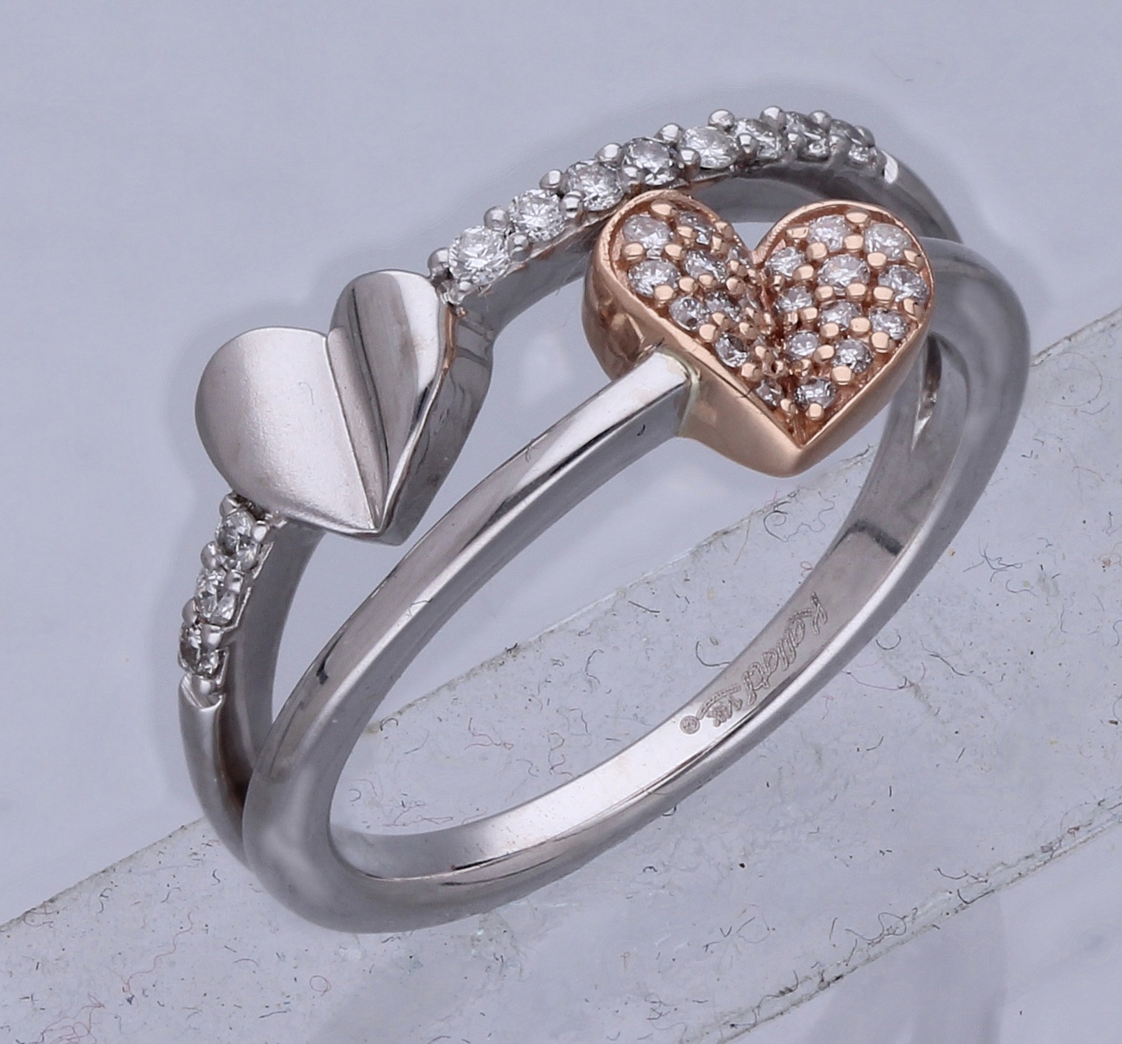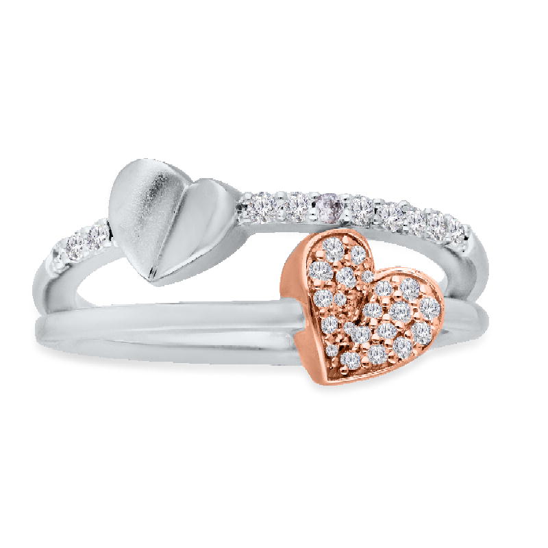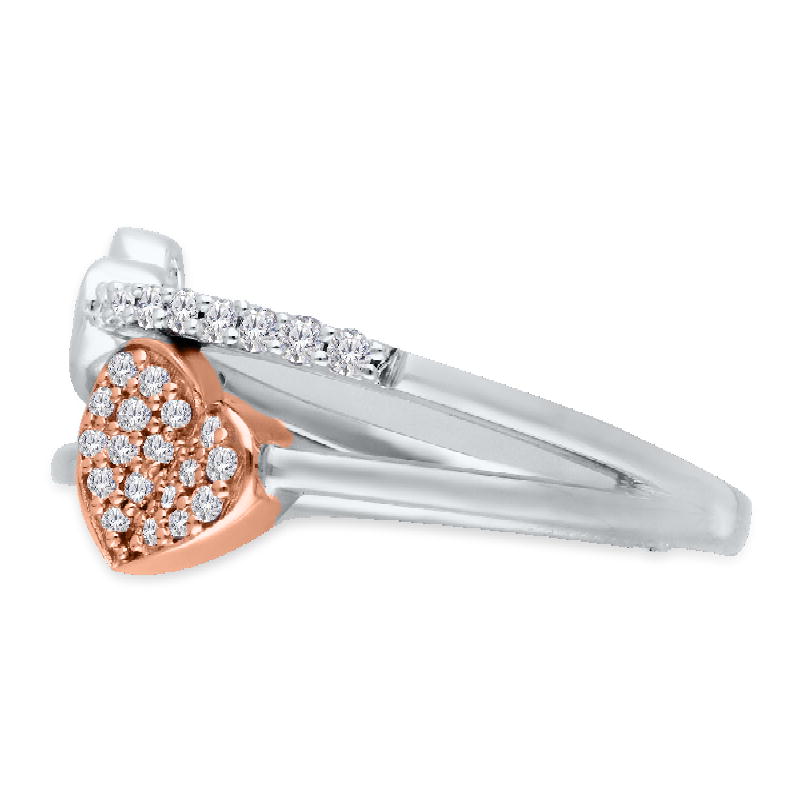 14K ROSE & WHITE GOLD WHITE DIAMOND HEART FASHION RING