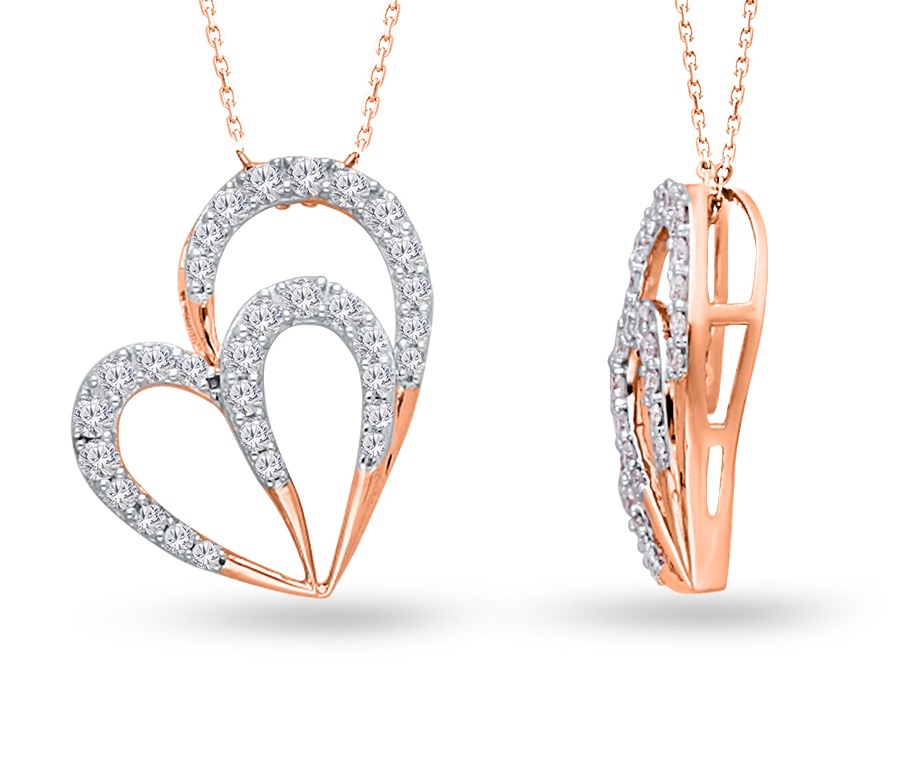 14K ROSEGOLD WHITE DIAMOND HEART PENDANT