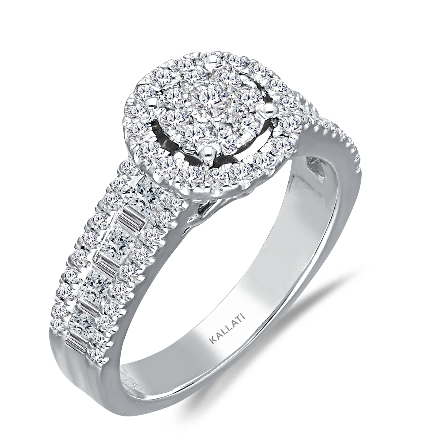 14K WHITE GOLD WHITE DIAMOND CLUSTER ENG
