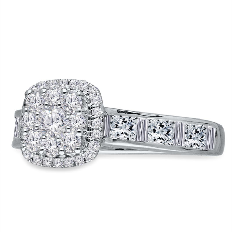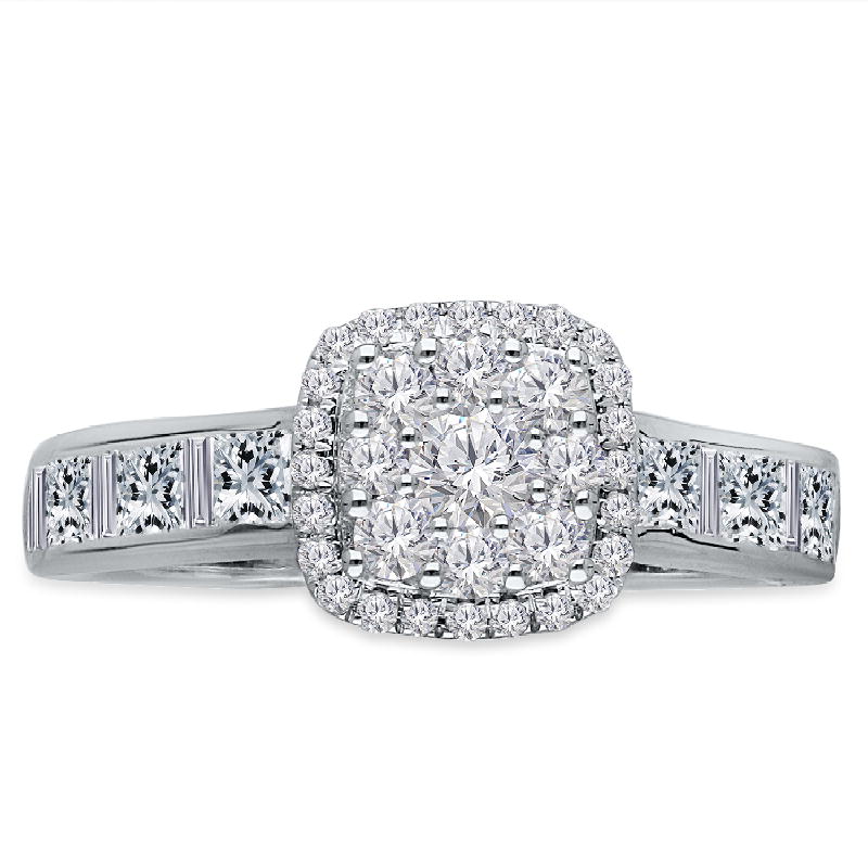 14K WHITE GOLD WHITE DIAMOND CLUSTER ENG
