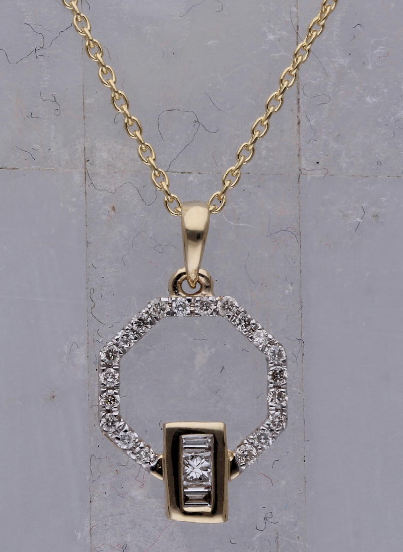 14K YELLOW GOLD PRINCESS& BAGGUETTE WITH WHITE DIAMOND FASHION PENDANT