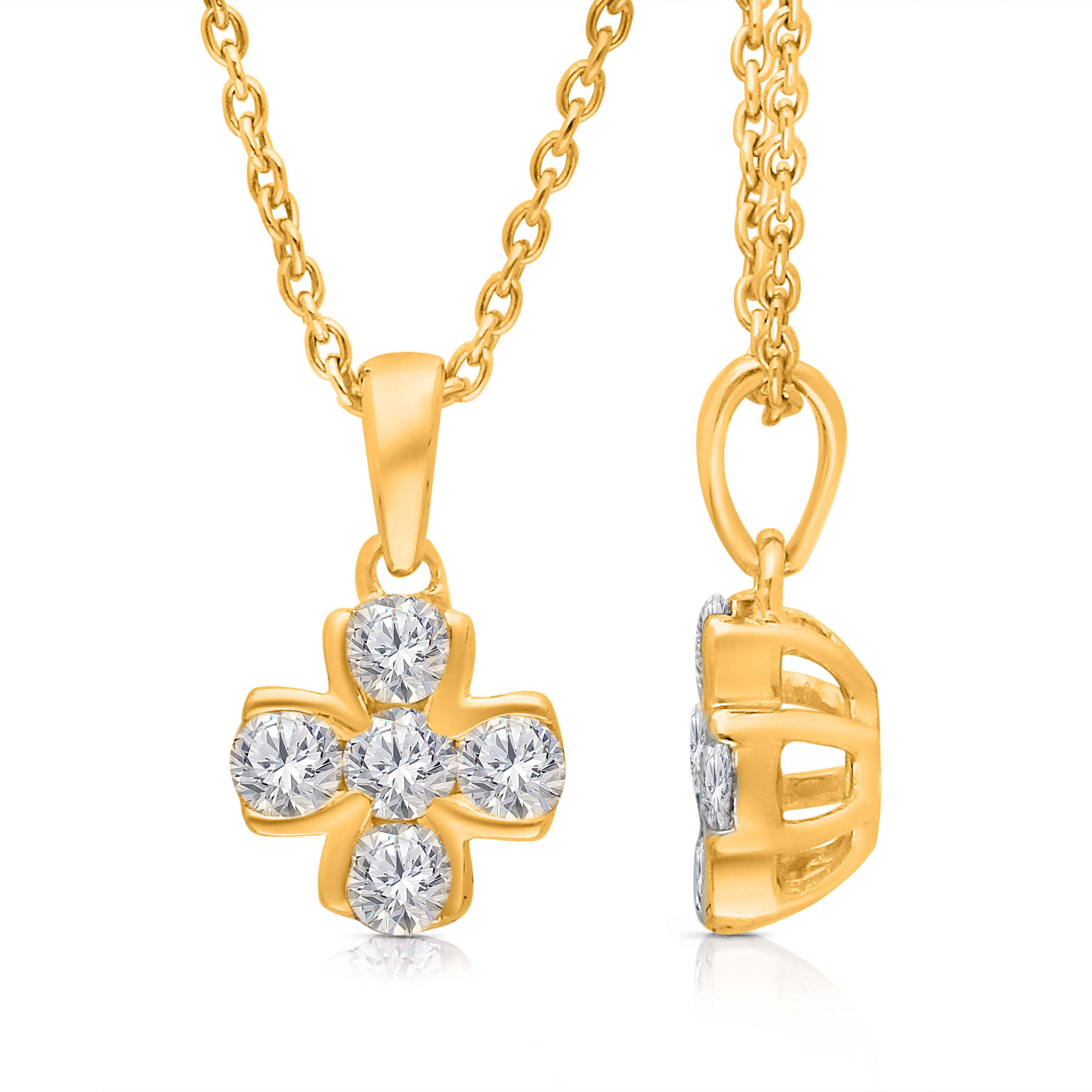 14 K YELLOW GOLD WHITE DIAMOND FASHION PENDANT