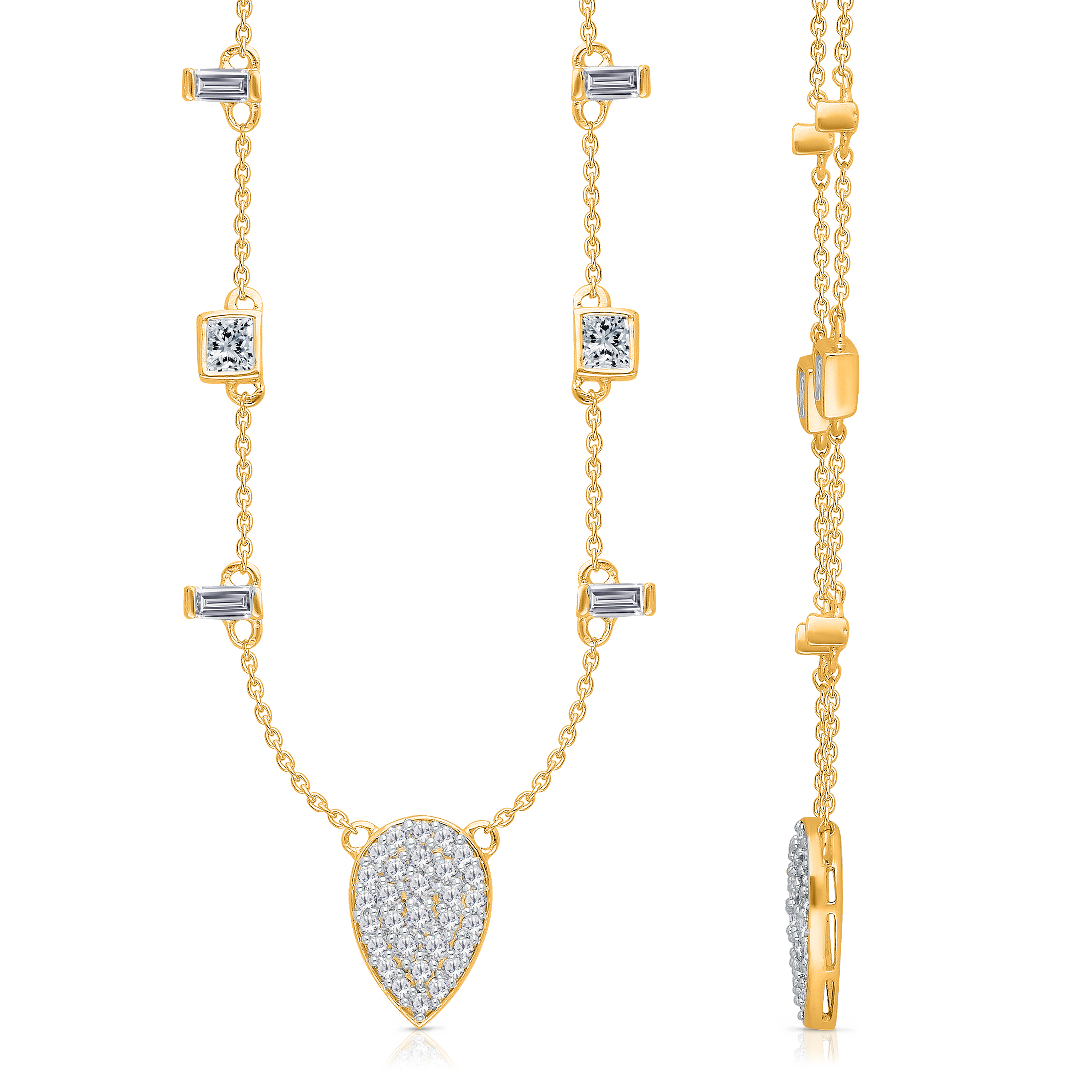 14K YELLOW GOLD PRINCESS& BAGUETTE WITH WHITE DIAMOND FASHION NECKLACE