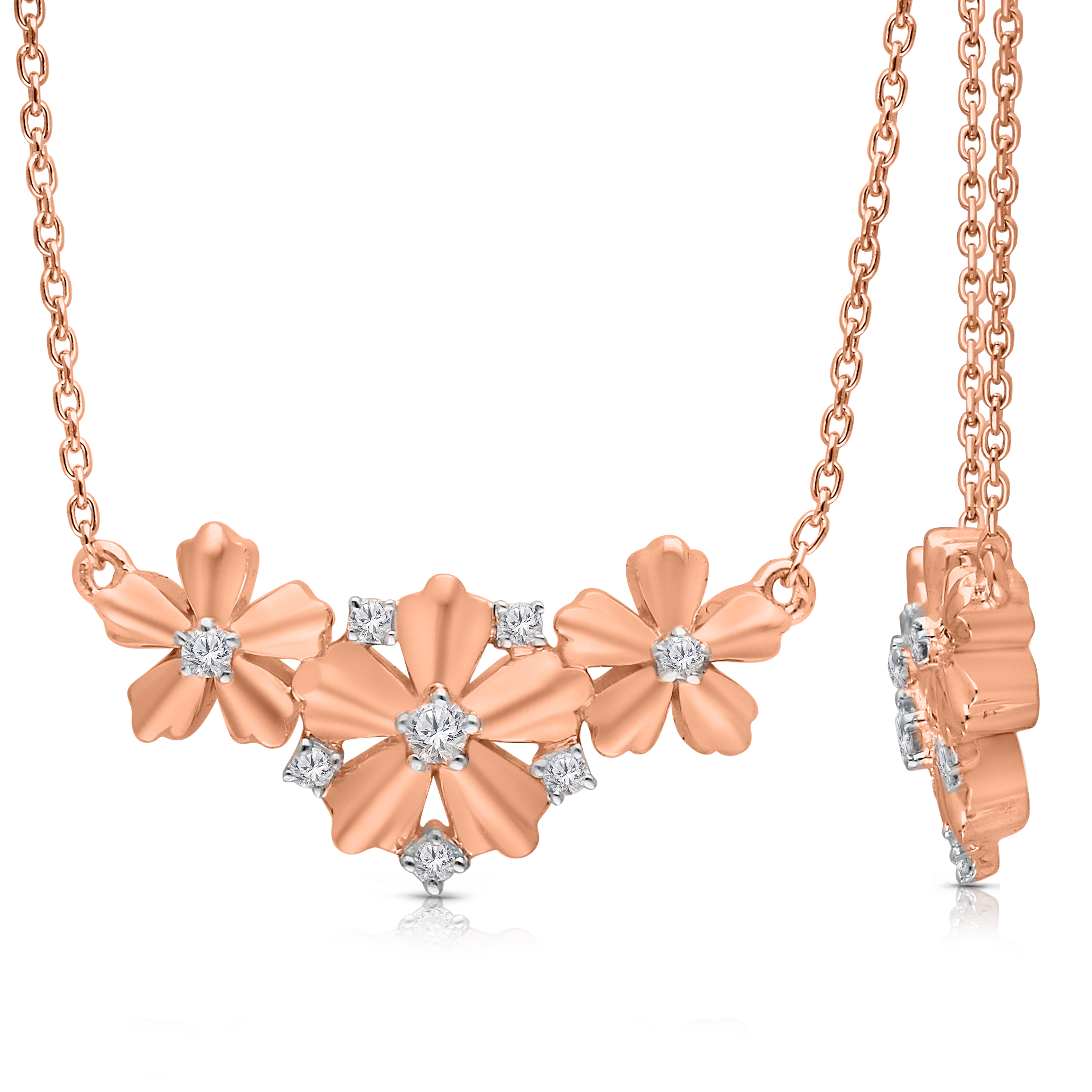 14 K ROSE GOLD WHITE DIAMOND FASHION NECKLACE