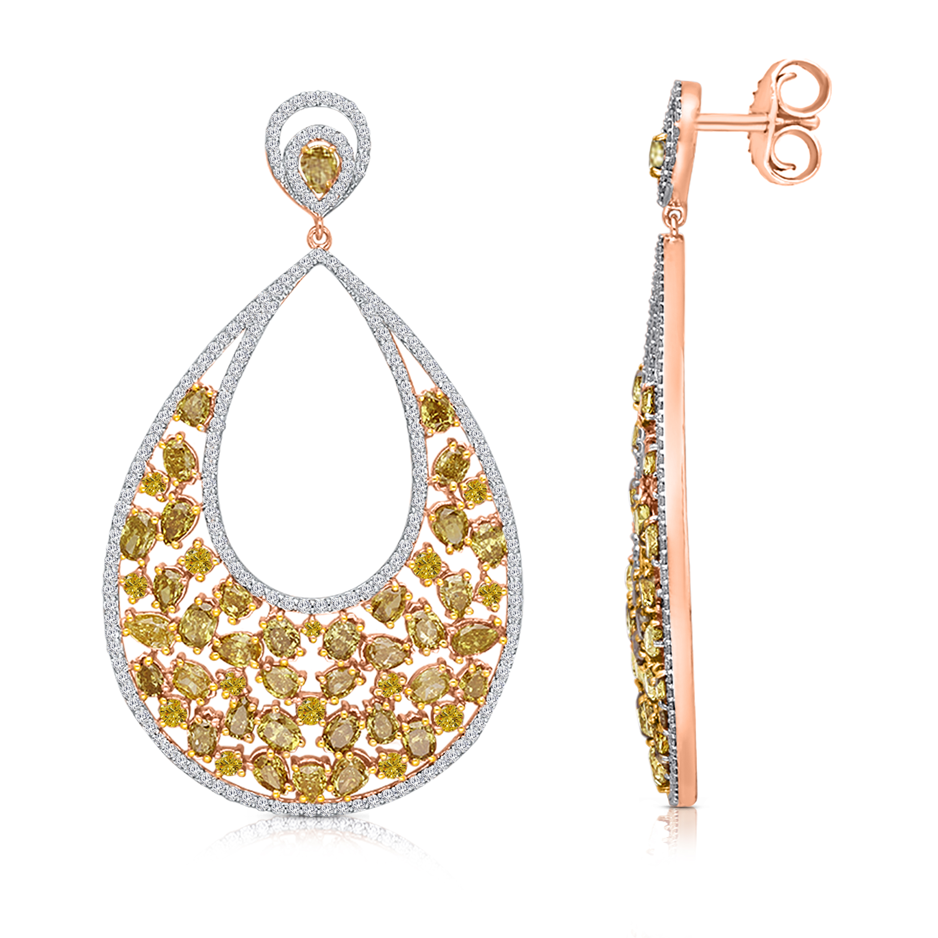 14K ROSE GOLD YELLOW FANCY & WHITE DIAMO