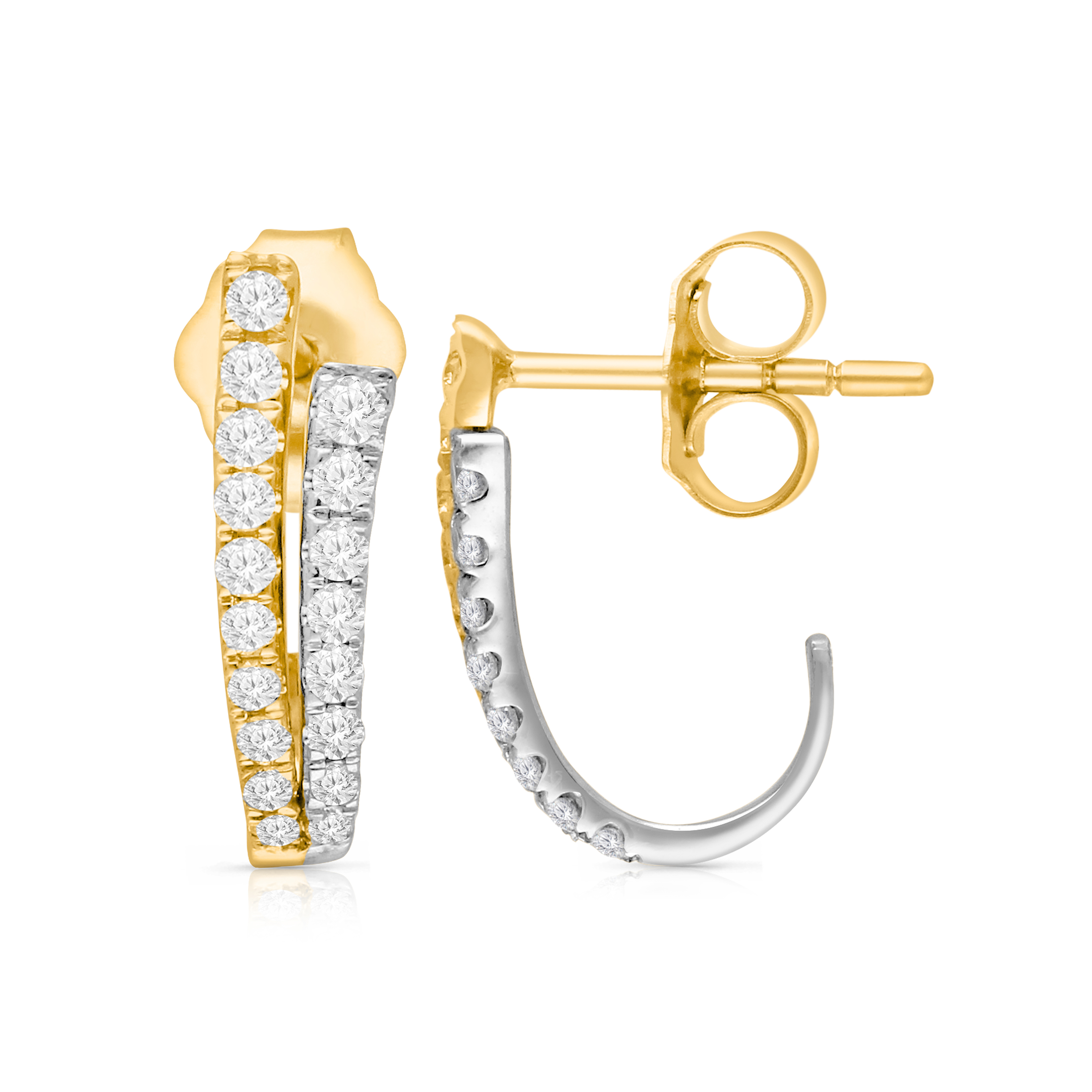 14K YELLOW & WHITE GOLD WHITE DIAMOND FASHION EARRING