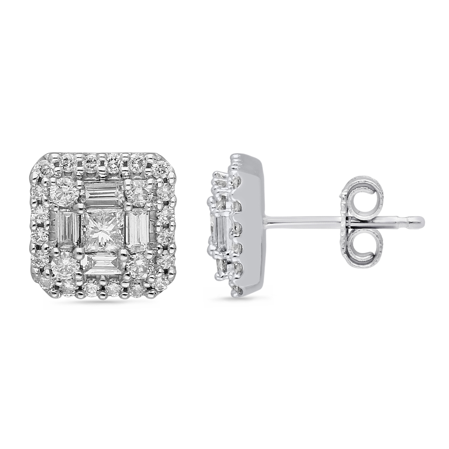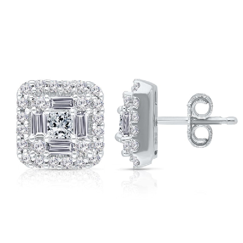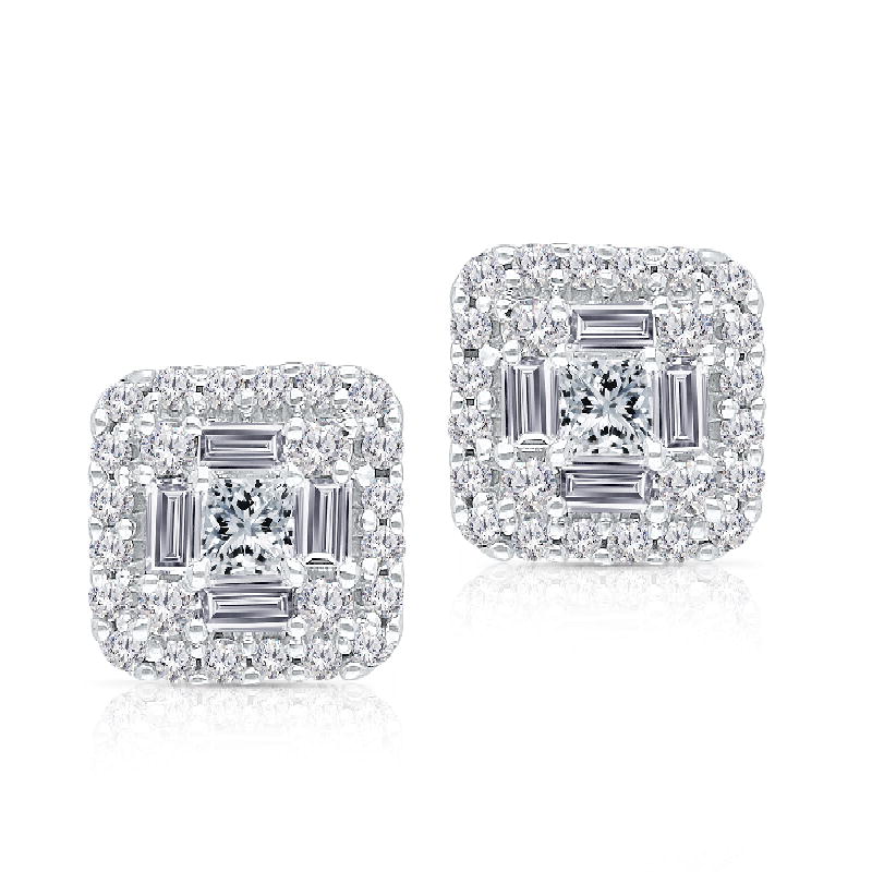 14K WHITE GOLD PRINCESS & BAGUETTE EARRI
