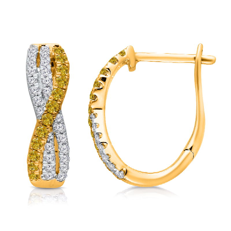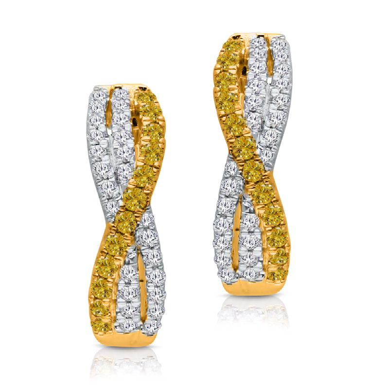 14K YELLOW GOLD YELLOW FANCY & WHITE DIAMOND FASHION EARRING