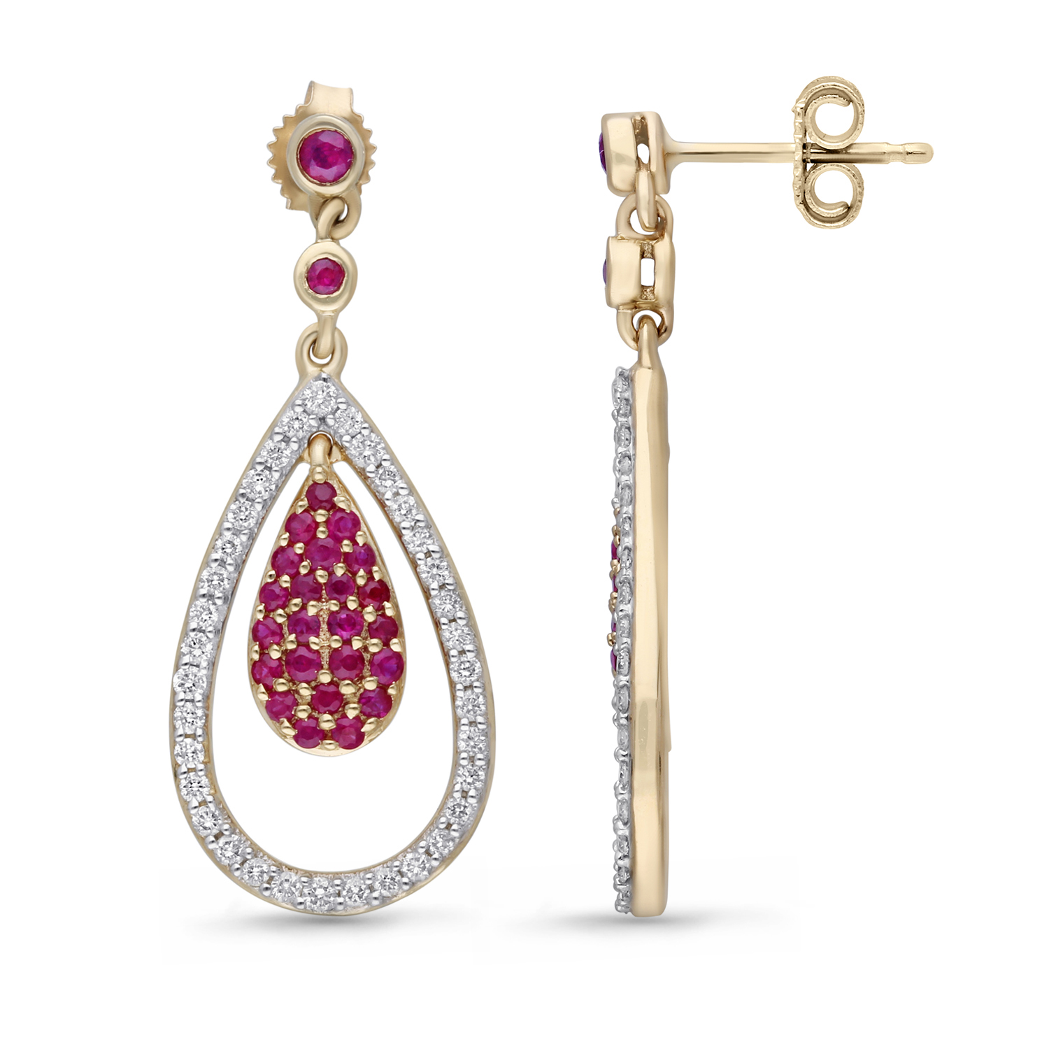 YELLOW GOLD RUBY DIAMOND FASHION EARRING