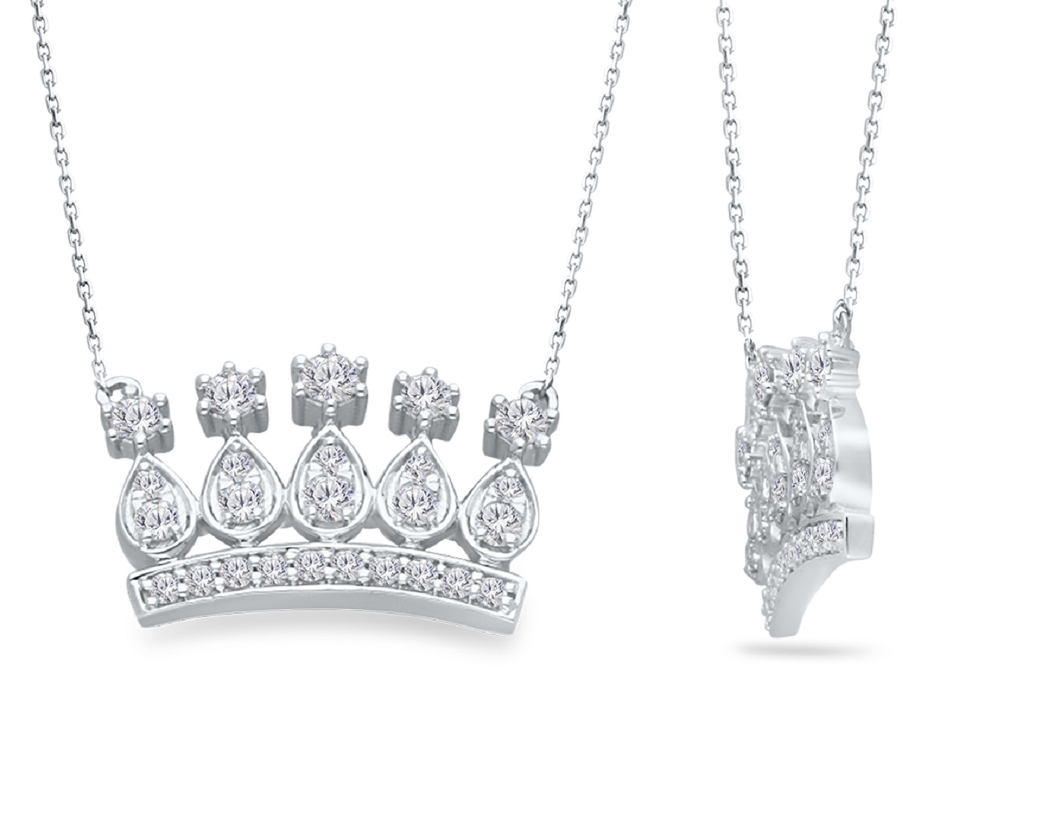 14k WHITE GOLD CROWN WHITE DIAMOND PENDA