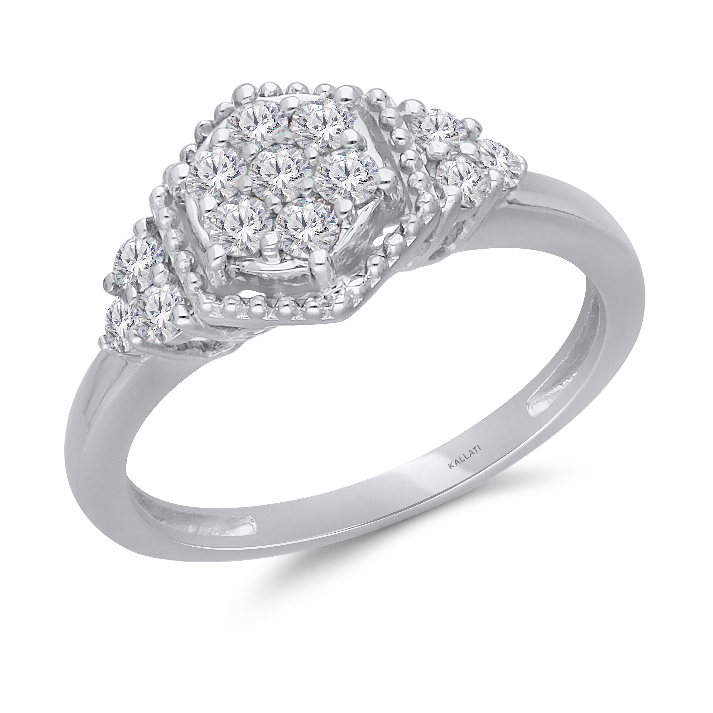 14 K WHITE GOLD WHITE DIAMOND CLUSTER FASHION RING