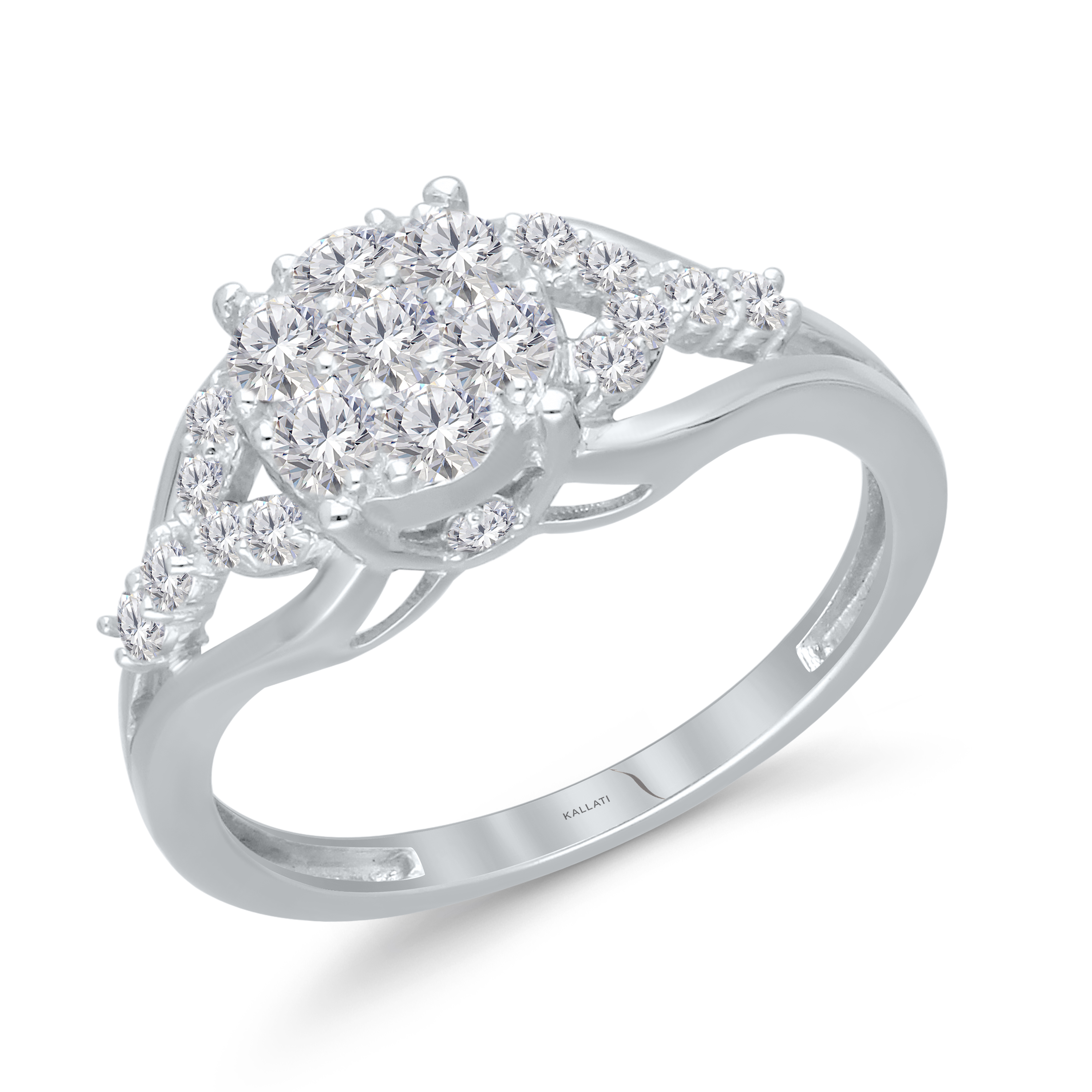14 K WHITE GOLD WHITE DIAMOND CLUSTER FASHION RING