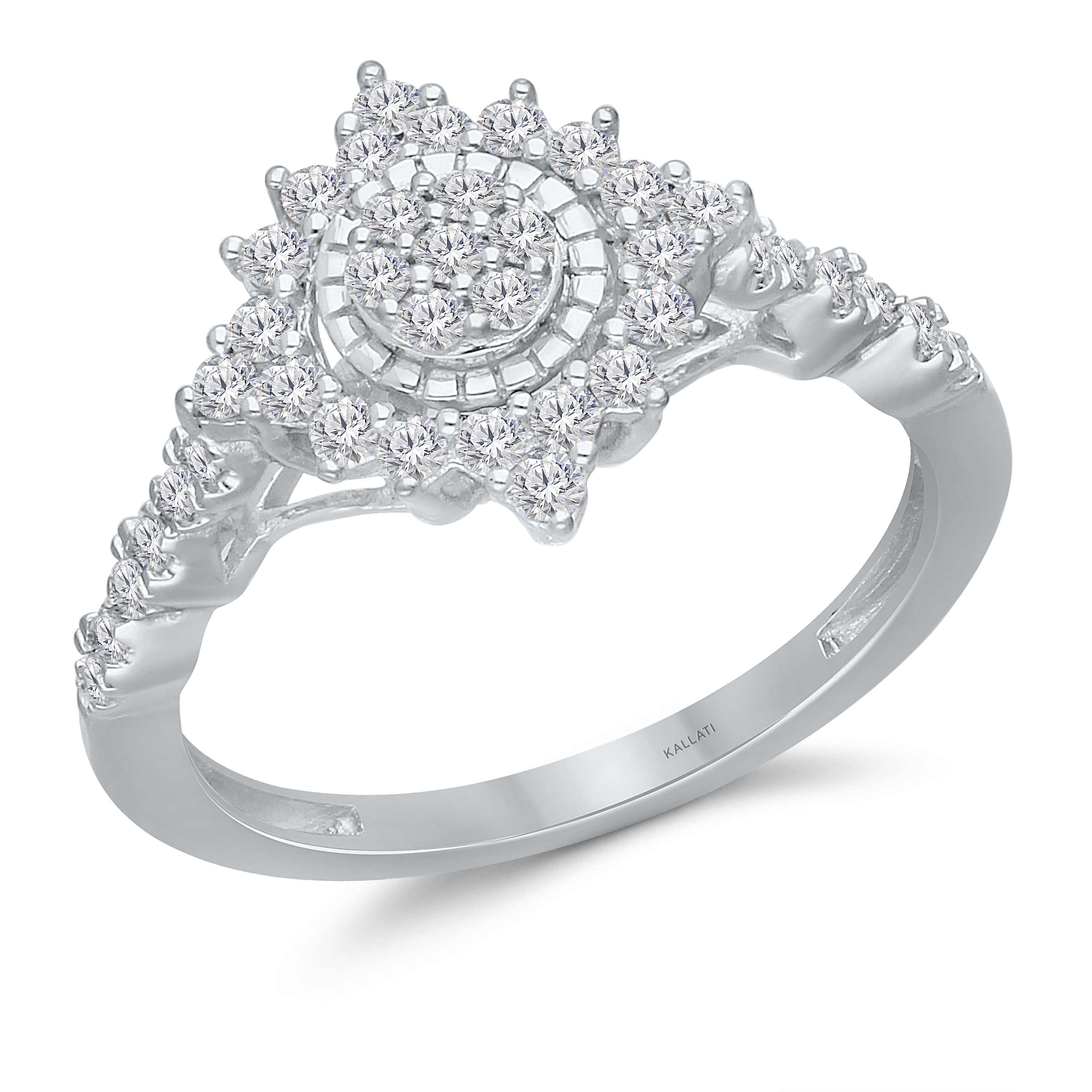 14 K WHITE GOLD WHITE DIAMOND CLUSTER FASHION RING