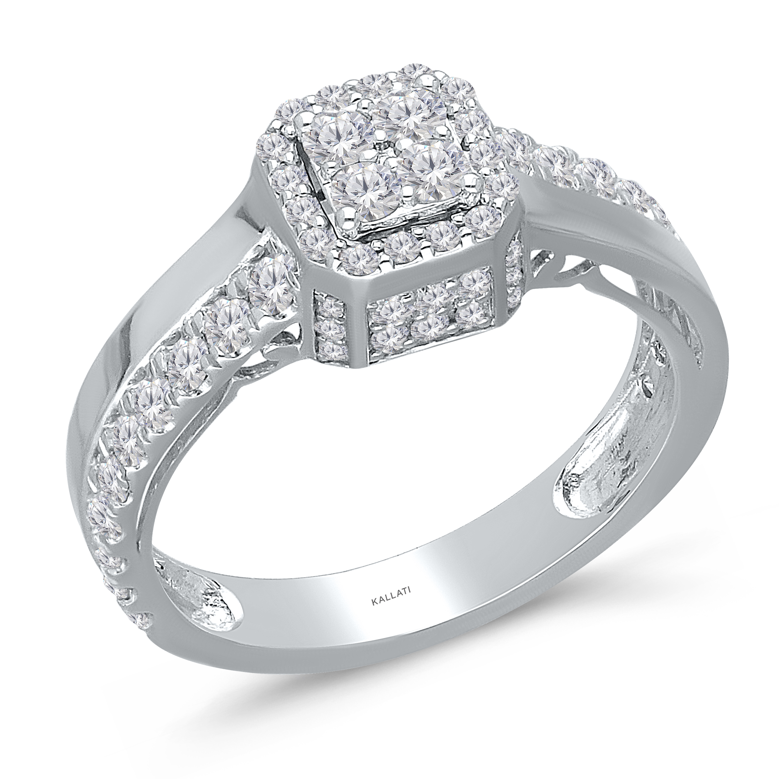 14 K WHITE GOLD WHITE DIAMOND CLUSTER EN