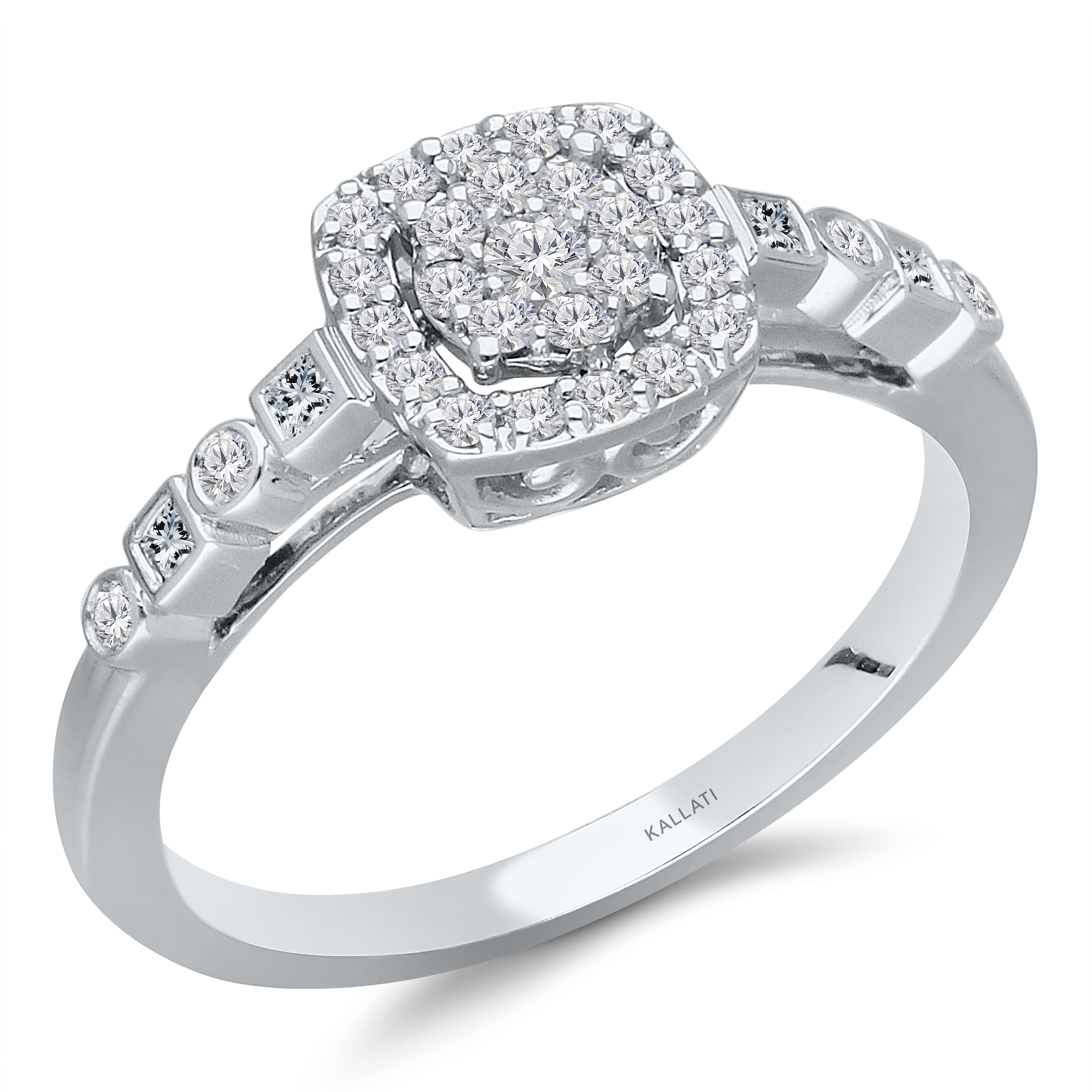 14 K WHITE GOLD WHITE DIAMOND CLUSTER EN