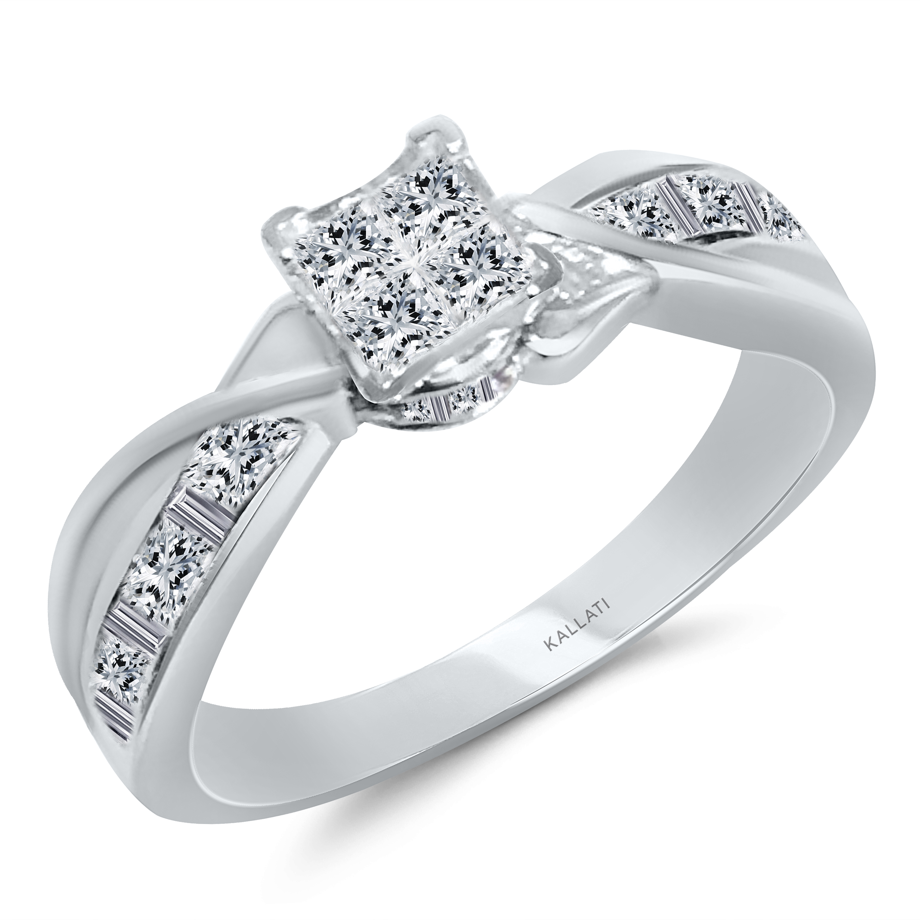 14K WHITE GOLD WHITE DIAMOND CLUSTER ENG