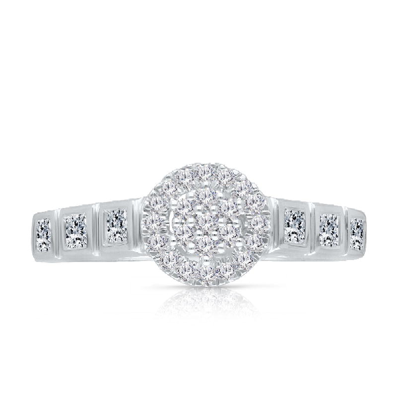 14 K WHITE GOLD WHITE DIAMOND CLUSTER EN