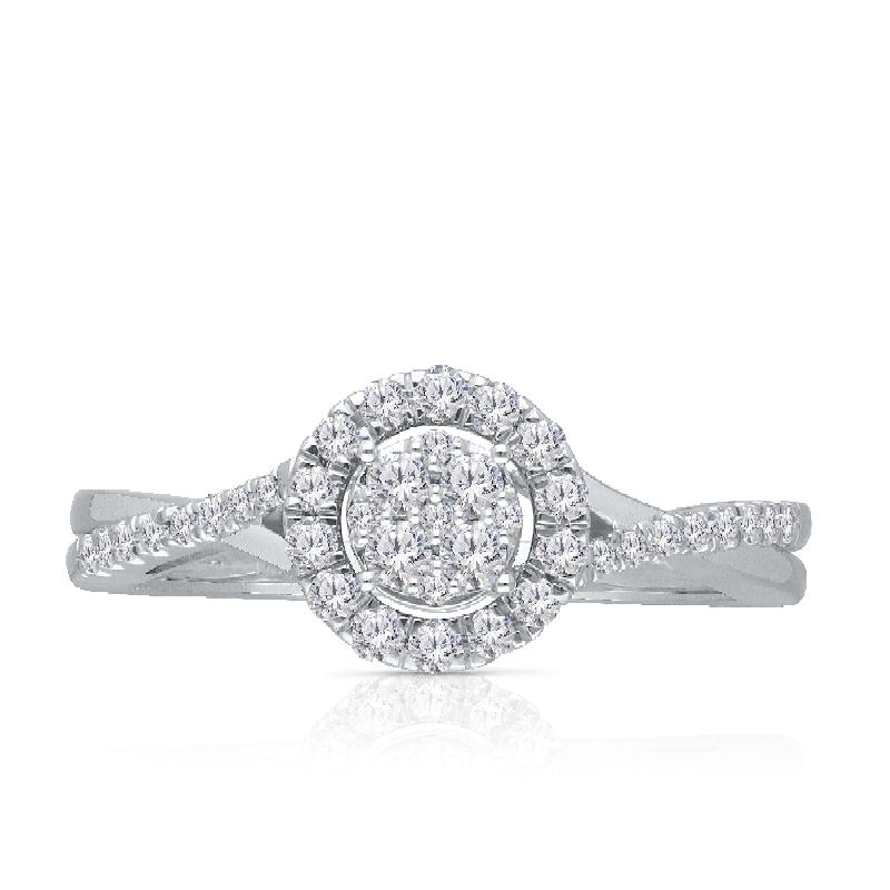 14K WHITE GOLD WHITE DIAMOND CLUSTER ENG