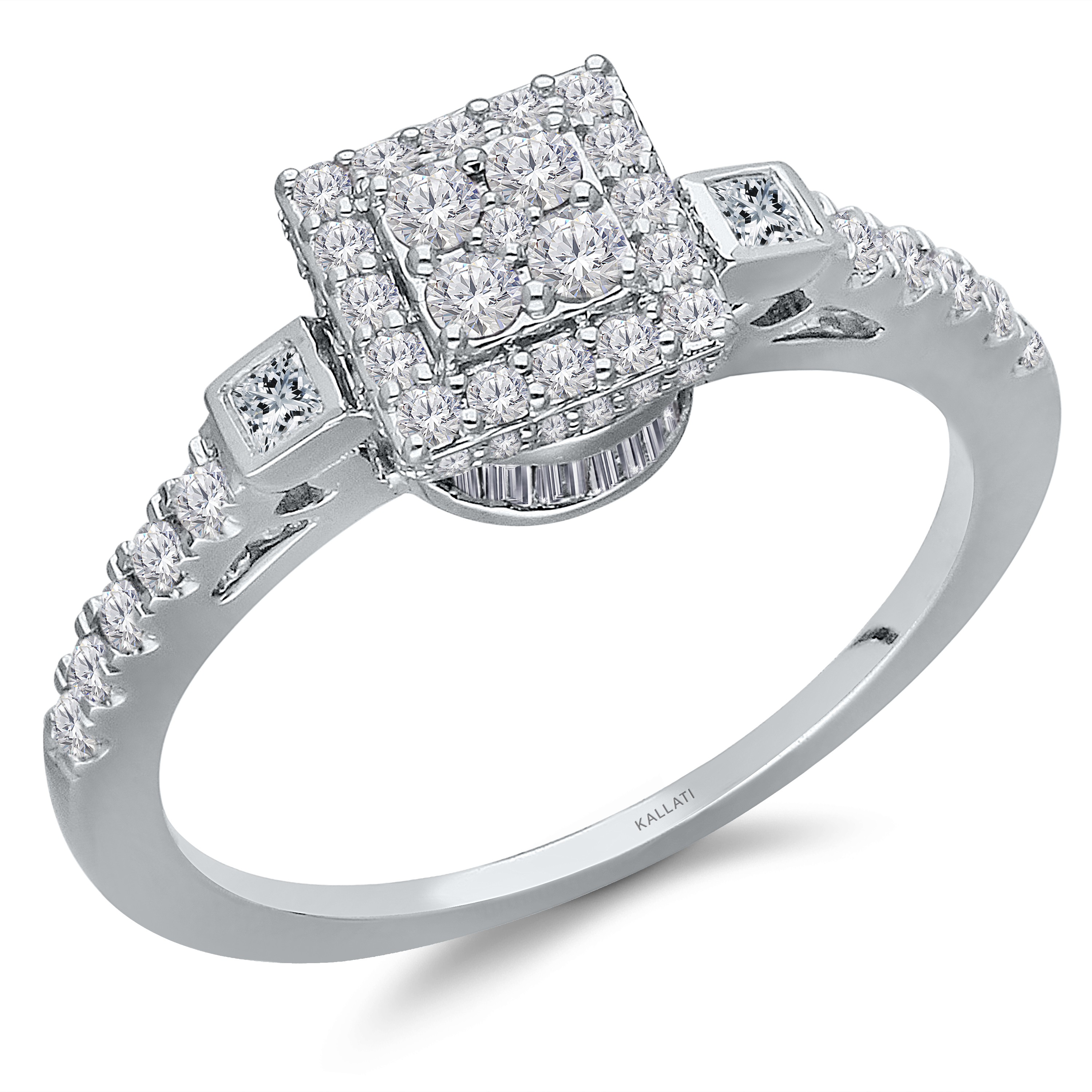 14K WHITE GOLD WHITE DIAMOND CLUSTER ENG