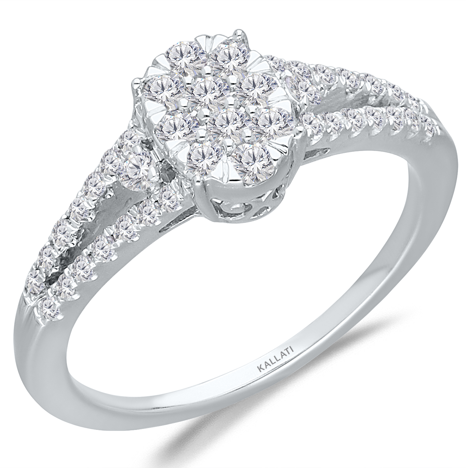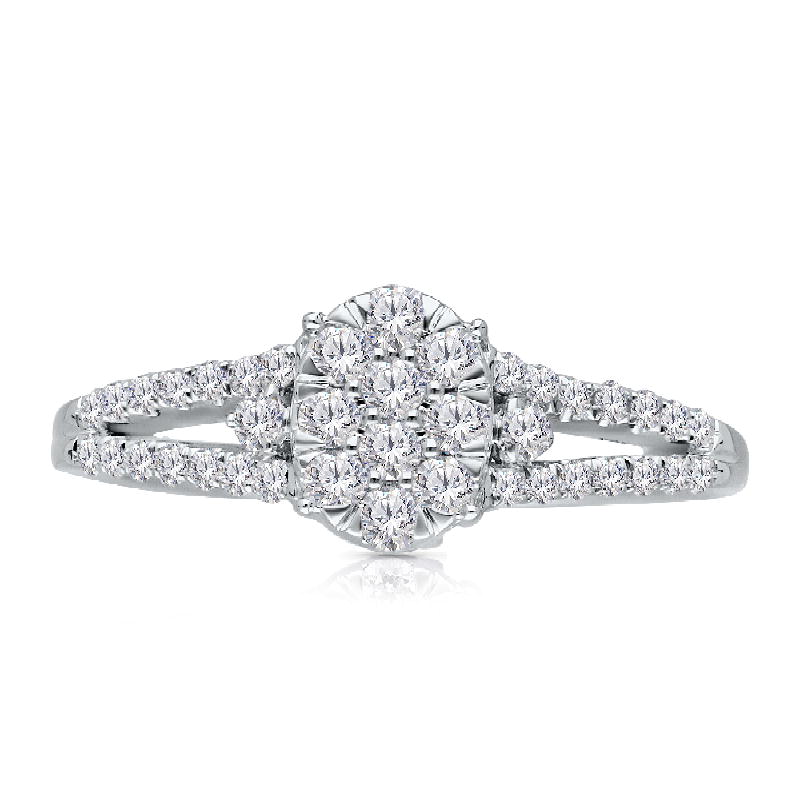 14K WHITE GOLD WHITE DIAMOND CLUSTER ENG