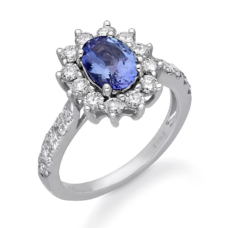 14K WHITE GOLD CEYLON SAPPHIRE & WHITE D