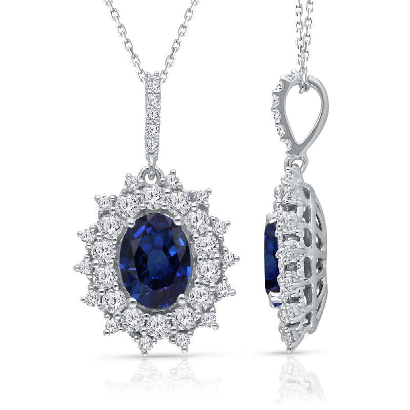 14K WHITE GOLD SAPPHIRE & WHITE DIAMOND