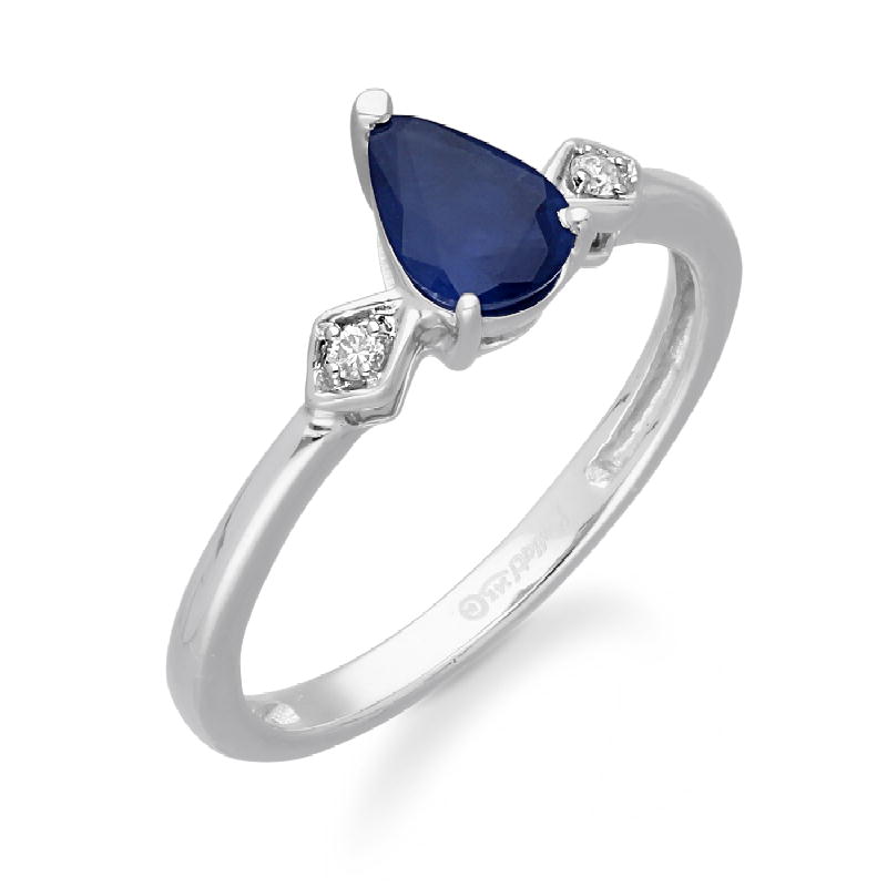 14K WHITE GOLD SAPPHIRE & WHITE DIAMOND
