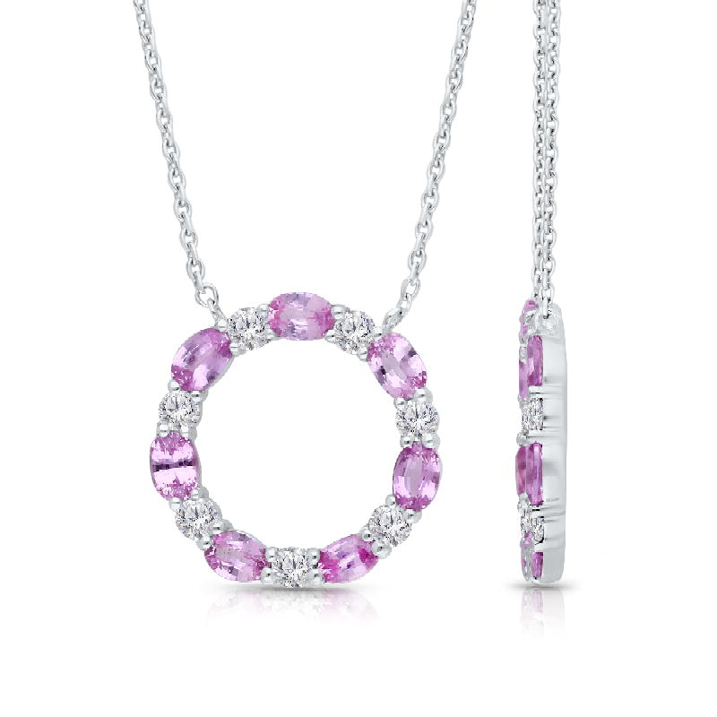 14K WHITE GOLD SAPPHIRE & WHITE DIAMOND FASHION PENDANT