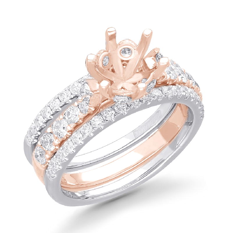 14K TWO TONE SEMI MOUNT SI DIA ENG&BAND