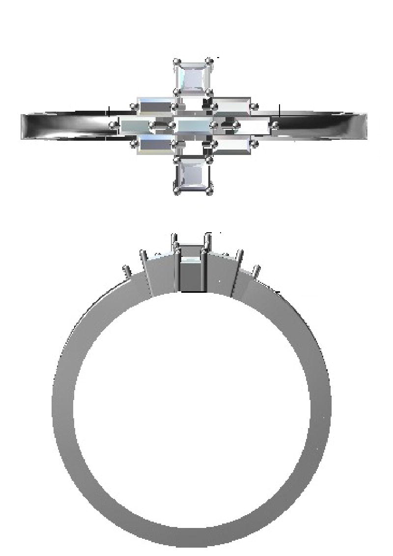 14K WHITE GOLD PRINCESS& BAGUETTE FASHION RING