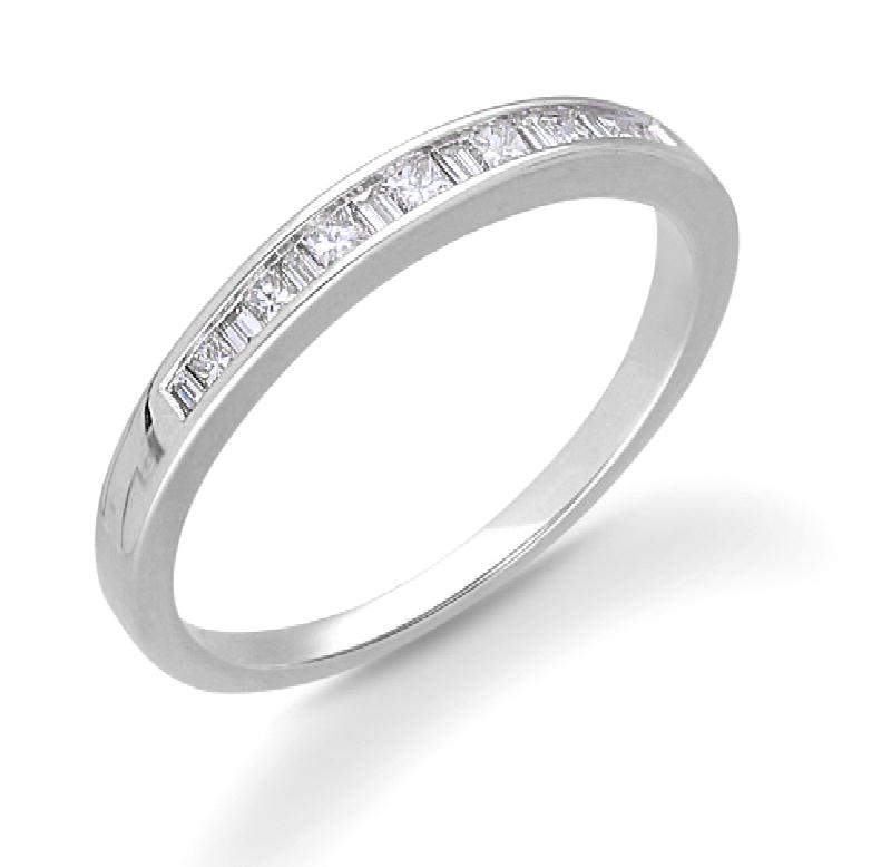 14K WHITE GOLD PRINCESS & BAGUETTE RING
