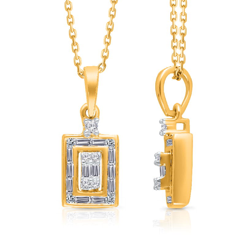 14KYELLOW GOLD PRINCESS& BAGUETTE WITH WHITE DIAMOND FASHION PENDANT